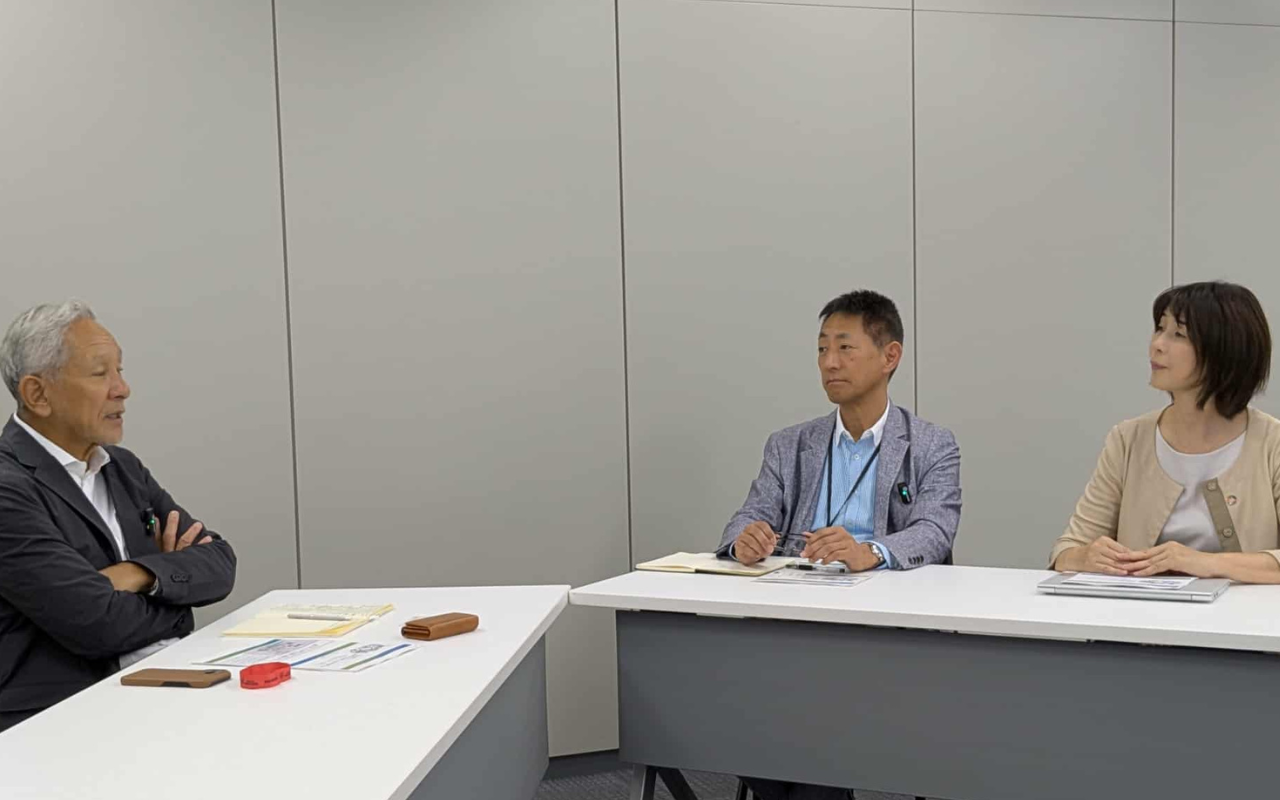 お越しいただいたのは、阪急阪神不動産株式会社 執行役員/開発事業本部 副本部長(都市マネジメント事業担当)の谷口 丹彦様、そして阪急阪神ホールディングス株式会社 グループ経営企画室 サステナビリティ推進部長の相良 有希子様です。