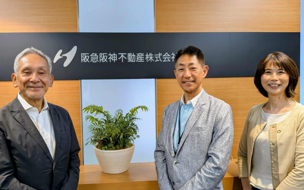 今回は、米倉 誠一郎学長が阪急阪神不動産株式会社(本社:大阪府大阪市)執行役員/開発事業本部 副本部長(都市マネジメント事業担当)の谷口 丹彦様、阪急阪神ホールディングス株式会社(本社:大阪府大阪市)グループ経営企画室 サステナビリティ推進部長の相良 有希子様にお話を伺いました。