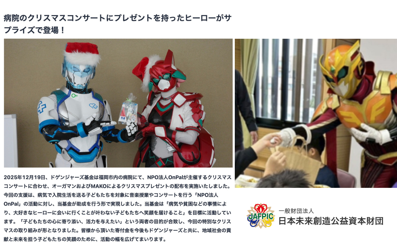 □ 病気で入院する子どもたちへヒーローからクリスマスプレゼントを届けた活動レポート